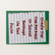 Make it yourself with this fun, custom puzzle template. Easily write your own text, cute photo, abstract design, pattern, a funny quote, or even an insult onto the taped paper note. Just click on "Customize it" and then add your own personal message and or photograph. When they finally put the whole puzzle together they will get your message! Great idea for "Will You Marry Me?" Great personal gifts for family, like mom or dad, teacher, and friends, girlfriend, boyfriend, etc. Shown are Christmas colours of green background and red text which can easily be changed to any colours to further customize. What's your message going to be?