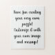 Have fun creating your very own customized and personalized puzzle! Hide your message in a Zazzle Puzzle. Upload your own image or your own design and add your own message. Great fun to surprise your loved one with. Great for birthdays presents, guessing surprise trips away, Valentines Day, Christmas Presents and much more!