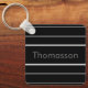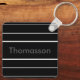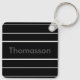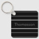 This modern monogram gives your keychain a unique and distinguished look. White horizontal lines compliment the minimalist black and grey colour scheme. This keychain will help get you through many doors and into your car, home, office, class room, locker - with style. Get it for yourself or give it as a custom made gift to your family and friends.