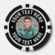 This custom poker chip features your photo printed right on the front in a clean circular layout, with space for short text above and below the image. Add a name, date, team slogan, or a fun message to make it personal. The same reversed color layout is applied on both sides for a bold, eye-catching look. It works with anything from a favorite game shot to a family photo, a pet pic, or something playful for friends or a poker night.
