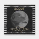Make your own custom pet photo magnet for a commemorative pet memorial keepsake gift- Simple, rugged style black frame with torn looking edges holds a personalized photo of your pet dog, cat, horse, or whatever furry friend you may miss. Interlinked gold metal look hearts at bottom of frame. On a black and white stripes background. Doesn't have to be a pet photo or a memorial. Change the sample photo to your favourite family photo, instagram photo, pictures of friends or happy pets! Personalize with name at top, or add a customized message. Nice keepsake gift for pet lovers or those missing fur babies who went to the Rainbow Bridge. We have this black photo template frame on other customized pet gifts, as well as lots of other personalized photo gift ideas, too.