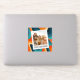 Create your own custom photo sticker. Simply add one of your favourite pictures and personalized text in vintage typewriter typography on a colour retro stripes background.