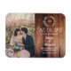 Rustic botanical watercolor leaves on dark barn wood, monogrammed photo Save the Date flexi magnet.