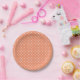 Choose your favourite background colour to create your own white polka dotted paper plates. You can replace the orange colour on these paper plates to coordinate with your wedding colour palette. If you want to add text, you could add a round shape in the system beneath your text. Pick a background colour. Change the background. All you need is the HTML hex colour code or use the system here to fine tune the shade you want.