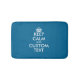 Personalized keep calm and your text teal blue and white non slip bath mat. Create your own funny keep calm and carry on parody rug for the chic bathroom. Vintage typography template design with elegant crown. Cute keepcalm examples: Keep calm and party on. Keep calm and dance on. Keep calm and sparkle on. Original keepcalmandcarryon gift ideas for men women and kids. Make your own humourous quote for yourself, friends and family, birthday, wedding party etc. Unique and trendy home decor products. Custom background colour. Available in small medium and extra large big size. Stylish interior decoration.