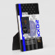 Easily Make Your Own award plaque design with 3 images and 9 lines of text you can edit to make it as you need. Your images and texts ready to edit. Just upload your images using the numbered image fields you find on this product page. For best results, use images with a centred subject, your images will automatically be cropped in the format you see on this product. A 5X7 image size will work best in general. A Thin Blue Line symbolic US flag custom design graphic. A great gift idea for gatherings, celebrations and occasions. Use the "Contact this Designer" link to contact us with your special design requests or for some assistance with any of your customization project needs.