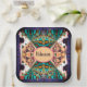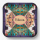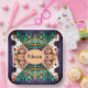 A bright geometric / fractal pattern in turquoise, violet and orange. Jewel or peacock colors. For a birthday party or maybe for a personalized guest plates at a wedding?