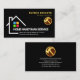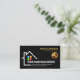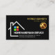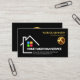 An all black cover features a creative building frame design. This design houses your business name and the contact details underneath. Towards the top of the card lies your prestigious name and job title with a gold hammer logo you can use.