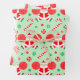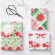 Unique cheerleading holiday gift wrap featuring cute Mrs. Claus cheerleader and Christmas candy in red and green.