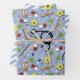 Unique medical-themed gift wrap featuring healthcare supplies and flowers pattern on blue background.
