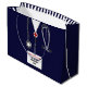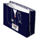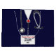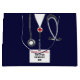 Unique medical school graduation gift bag for doctor grad featuring navy blue hospital scrubs and stethoscope. Edit text to add doctor, physician assistant or nurse's name and medial credentials.