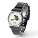 Unique witch watch design featuring silhouette of flying Halloween witch and funny quote.