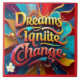 A vibrant design featuring the text "Dreams Ignite Change" in a dazzling array of colours, accented with golden touches that shimmer like stars. The bold typography is surrounded by abstract shapes and swirling patterns, symbolizing the energy and potential of creativity. This piece inspires viewers to embrace their aspirations and transform them into reality."Original Image was generated by Meta AI. AI generated artwork. Licensed under CC BY-SA 4.0.