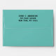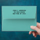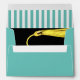 Graduation envelope featuring black and gold grad cap design on teal blue background. To personalize edit return address text.