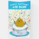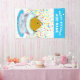 Groundhog Day happy birthday banner featuring groundhog jumping out of a cake. To personalize edit text to add his or her name.