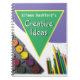 Creative ideas and creative thoughts notebook which has a border of paints and pencils as a background. Add the name of the recipient.
