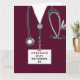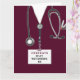 Unique nurse graduation congrats card featuring maroon hospital scrubs, a stethoscope, and funny Swiss Army knife illustration. Edit text to add nurse's name.