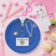 Unique nurse party plates featuring medical themed design for nursing school grad or medical school graduation party. To personalize edit text to add name.