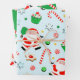 Unique pickleball holiday gift wrap featuring Santa pickleball player and Christmas candy, cupcakes and cookies.
