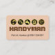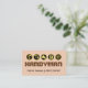 An all light brown cover has an array of gold handyman tools at the top of the card. The tools can represent some of the services that you offer e.g. the drill-measuring tape can represent Carpentry, Home repairs, the brush for painting works, the faucet for plumbing repairs, the washing machine for equipment repair and the tress for landscaping-gardening. After this comes your business name "HANDYMAN" (which is bolted in with screws) which you can change alongside the contact details.