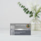 Over at the top grey layer are your prestigious name, job title and a slogan option to publicize your services. Change the caption remarks to suit your service needs. To the right side of this is a gold letter-C logo you can use. The letter-C can represent your prestigious name, business name etc. Southwards to the darker grey base lies the business name and its contact details.