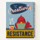 “Creativity Is My Resistance” celebrates the power of creativity with this bold, retro-modern design. Inspired by mid-century design and infused with a touch of playful rebellion, this artwork is for every artist, writer, crafter, and dreamer.