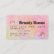 An elegant modern, stylish beauty credit card style business card with a modern script font typography on a chic faux pastel holographic glitter trendy background. all text is customizable, add your social media. Featuring faux rose gold stripe. Add your logo, your monogram and QR code.