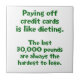 Humourous text about dieting and charge cards. Here's a laugh out to the dieters and those in debt. Customize for a laugh or a humourous gift. There's one in every office and every family, so go ahead and laugh about it.