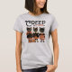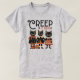 "CREEP it Real" declares the text in orange and black on this funny Halloween shirt. Below the text is a vintage image of three black cats dressed in their orange and black Halloween clothes, with Jack o' Lanterns at their feet.