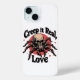 A design with a white background saying "Creep It Real, Love" in the style of a tarantula with a skull.