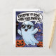 Halloween greeting card featuring a cute ghost wearing sunglasses, striking a cool pose.