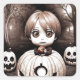 Creepy Child with Poison Apple in Pumpkin Square Sticker