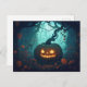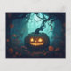 Imagine a moonlit night filled with whispers of the unknown – our postcard transports you to this mystical scene. The giant jack-o' lantern casts its warm glow, illuminating the forest and inviting you to explore the secrets that lie within.