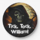 The grim reaper with his skeletal face and an ominous background makes up this scary design that says, "Tick, tock, name."