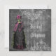 Cool and creepy Halloween Bridal Shower invitations with a fantastic horrific skeleton bride dressed in a beautiful black, pink and green wedding gown with butterfly ornaments. She is on a stylish, elegant vintage gothic black, grey and white shabby chic collage background with ornate white scroll decorations, a dragonfly, antique faded writing and stylish harlequin pattern. On the reverse of these funky goth invites is a glamourous printed black pearls and lace mat with text for you to personalize with your event details. Classy, trendy fun invites. All of the text can be easily customized to meet your needs and you can change the font style, colour and size of font if you desire. If you need any assistance customizing your product please contact me through my store and I will be happy to help. Pearl mat by ©Hazel Kinvig-Paul www.design-a-dream.co.uk Please note - all invites on Zazzle have flat printed images.