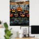 Creepy Halloween Jack-o'-Lanterns with Spiderwebs Poster