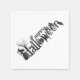 Halloween party paper napkins, with black watercolor artwork and text reading Happy Halloween, decorated with Halloween symbols. Matching Halloween party products are available.