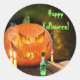 The text on these spooky Jack O' Lantern Pumpkin Halloween stickers is fully customizable. To change the text, use the personalize it option. For more extensive changes to the stickers, including changing the font, font colour, font size, or text placement, choose the customize it option. With it's antique and creepy feel, these are great stickers to give away at your next spooky halloween party or to use as envelope seals.