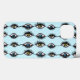 Creepy eye iPhone case with a weird pattern created from a cool digital ink illustration of staring blue and green eyes with long eyelashes arranged like garlands.