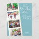 Célébrez votre jour de course avec cette carte postale à bande photo bleue ! Ajoutez quatre photos personnelles de marathon et un texte personnalisé pour votre destination et vos résultats ! Avec une mise en page élégante de bande photo blanche sur fond bleu foncé, ce modèle de carte postale vous permet d'ajouter quatre photos personnelles de Marathon. Personnalisez-la davantage avec un texte personnalisé pour la destination et les résultats. Parfait pour envoyer des salutations depuis vos moments de Marathon ou pour garder en souvenir !
