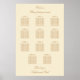 Crème Beige 11 Tableau Mariage de table Poster, s'il vous plaît personnaliser les noms du couple et les noms des invités ainsi que l'un des autres textes que vous souhaitez personnaliser. Un joli tableau de sièges avec du texte élégant dans une teinte dorée de beige sur un arrière - plan crème.