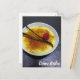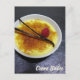 Creme brulee on slate with raspberry and vanilla holiday postcard