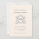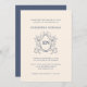 the design shows a classic elegant wedding invitation in dusty blue calligraphy and typography and a floral crest at the middle with couple name initials within it. This design is extremely classy and will be unique,classic choice for your wedding.