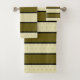 Élégantes larges bandes horizontales en vert olive, noir et crème avec set de serviettes de bain motif diamant.
