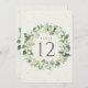 Une carte de numéro de table de mariage crème, recto verso, avec des neiges peintes à la main et de l'eucalyptus disposées en une belle couronne botanique. Tout le texte est entièrement modifiable. D'autres conceptions, des produits de numéro de table et des articles de coordination sont disponibles dans mon magasin.