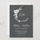 Boho Star Crescent Moon Celestial Monogram Wedding Invitation. Celebrate an evening under the stars with this whimsical boho celestial wedding theme. Featuring a watercolor midnight sky crescent moon, gold stars, and white flowers, feathers, and other bohemian accents, it creates an elegant yet playful look. The back showcases a dark starry night watercolor. The overall colour scheme includes black, white, gold, and grey, with a charcoal grey background and white text. The design combines an elegant mix of script typography and a serif font. Enjoy a mystical evening beneath this enchanting crescent moon sky. Crescent Moon Celestial Wedding Invitation. Available as a printed invitation, or as a downloadable digital invite that you can send in e-mail or have printed locally!