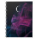 A beautiful crescent moon atop a swirling, ethereal purple wisp of smoke adorns the cover of this notebook.