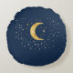 Introducing our exquisite Crescent Moon Starry Night throw pillow, a celestial marvel that will transport you to a dreamy starlit sky. Crafted in a captivating dark navy blue shade reminiscent of the night sky, this throw pillow is adorned with a mesmerizing gold crescent moon at its centre, surrounded by a celestial constellation of gold and light silver stars.