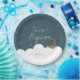 This cute baptism paper plate features faux gold glitter stars and the crescent moon on a navy blue background. Change the background colour and personalize it for your needs. You can find matching products at my store.