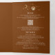 This enchanting terracotta tri-fold wedding invitation beautifully merges your cherished photographs with an extraordinary cosmic and mystical design, ideal for themes like "Under the Stars," "To the Moon and Back," or "Written in the Stars." The tri-fold card elegantly consolidates your wedding invite, details - information, and RSVP into one sophisticated ensemble. Additionally, you can add a QR code - simply substitute the existing URL with one of your choosing. The design is adorned with exquisite illustrations of a golden crescent moon, a glowing sun halo, assorted planets, constellations, and galaxies, capturing the mesmerizing essence of a star-filled night sky. You have the flexibility to feature a single photo on both sides or to select two different photographs to add more variety.